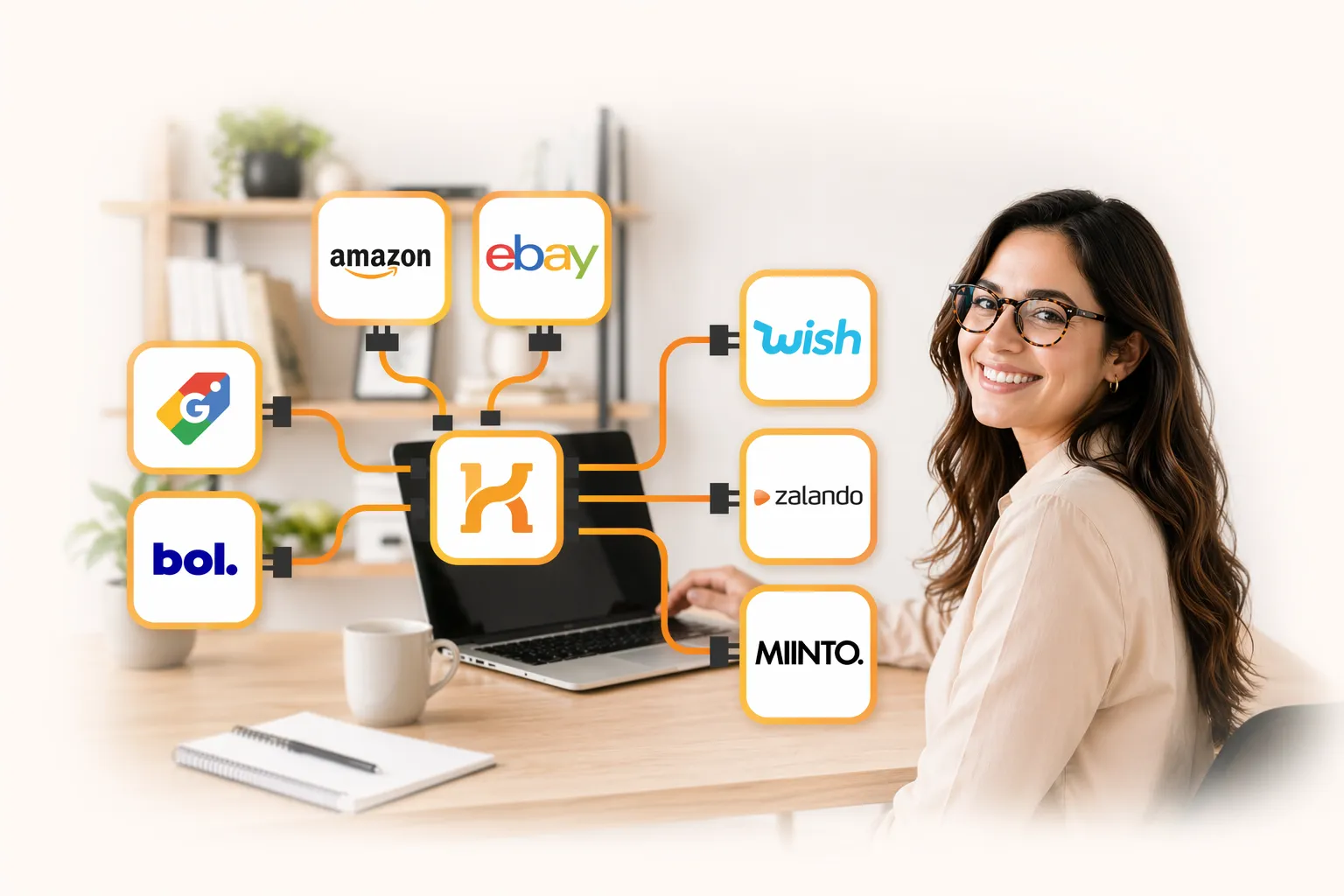 Koongo centralizza i dati dei tuoi prodotti e li distribuisce automaticamente su tutti i canali di vendita collegati. La gestione automatica degli ordini è disponibile per marketplace online come Amazon, eBay, Bol, Beslist, Miinto, Spartoo, Wish o Zalando.